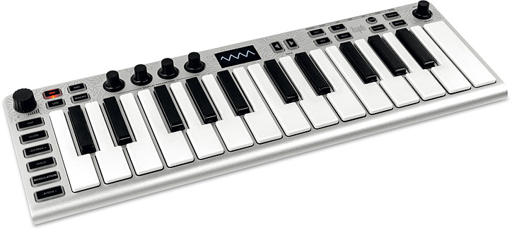 a 25-key keyboard with polyphonic aftertouch, a MIDI interface, an audio interface,